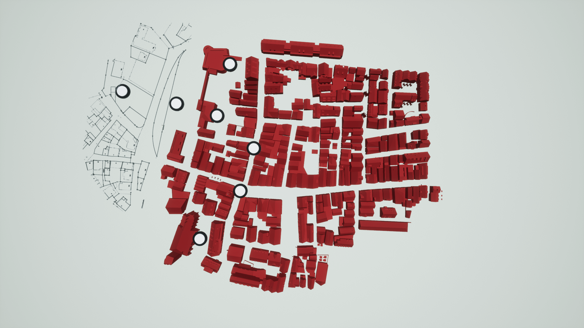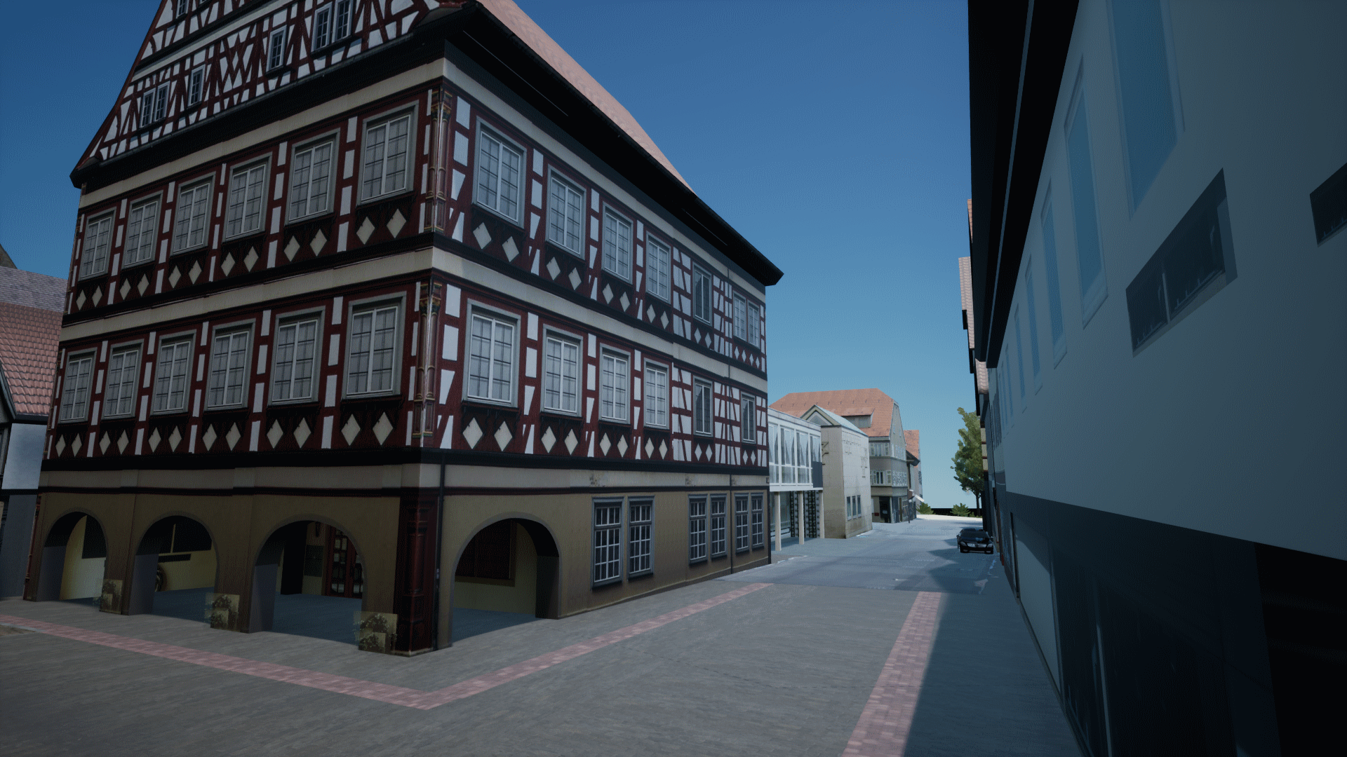 Rathaus Kirchheim u. T.Aufnahme von Teilen der Innenstadt. Erstellen einer Animation zur virtuellen Begehung des geplanten Neubaus im Bestand.
